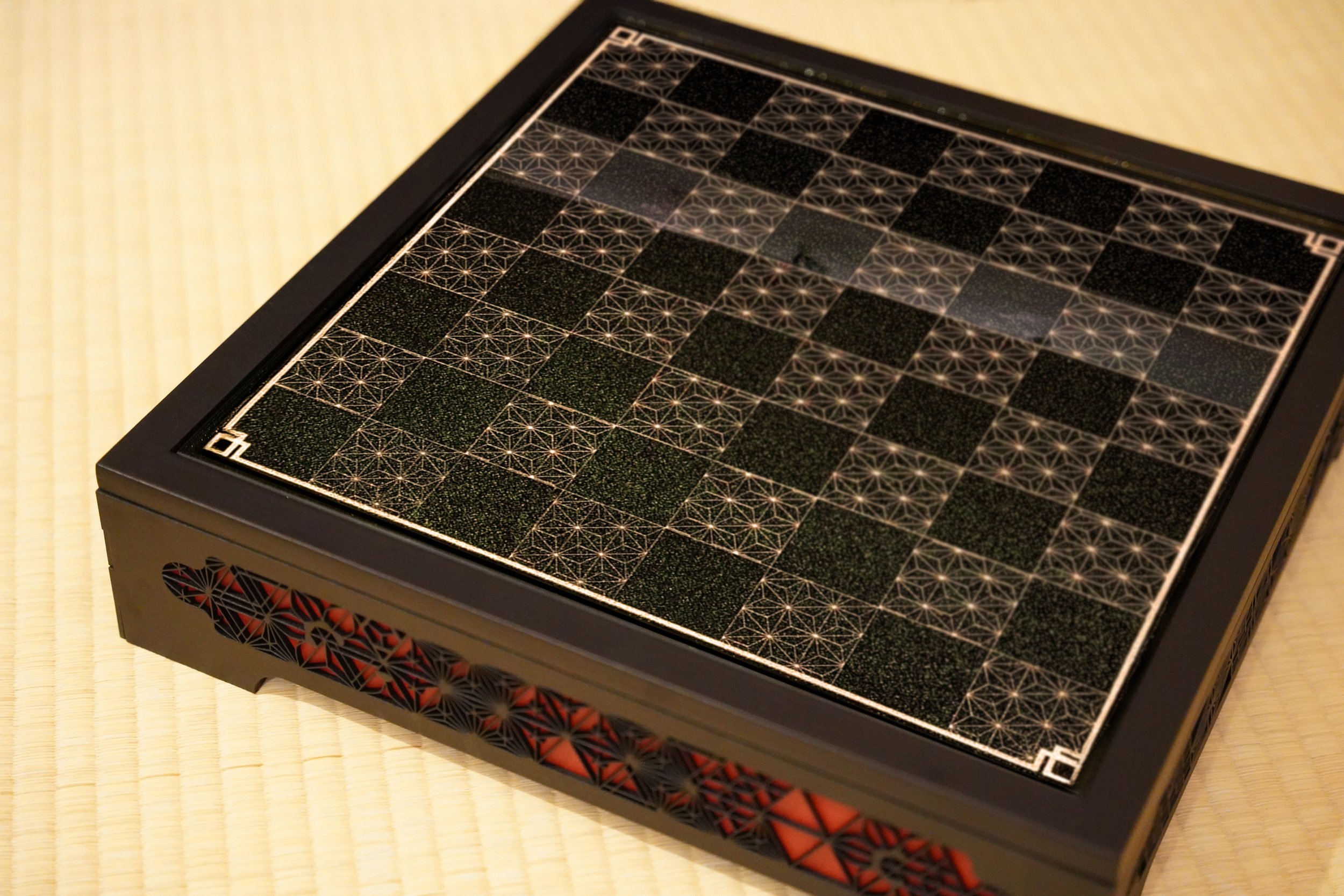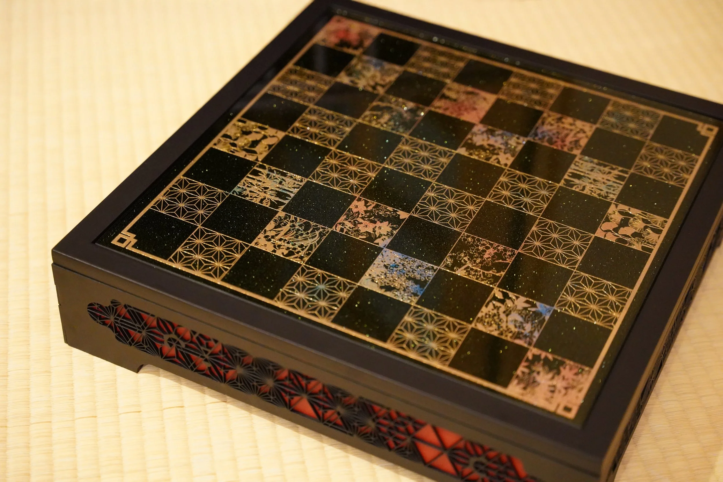 「陽炎」チェスセットは駒の漆色や盤面デザインの組み合わせをお選び頂けるオーダーメイド作品です。